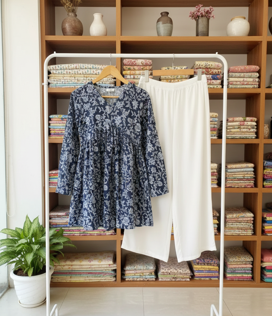 Crafted from soft, breathable fabric, this set is perfect for daily wear, casual outings, or relaxed festive moments. Easy to style and lightweight, it delivers both comfort and timeless charm for everyday elegance.